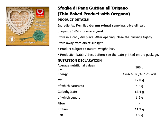 • Sfoglie di Pane Guttiau all'Origano (Thin Baked Product with Oregano) 100g,