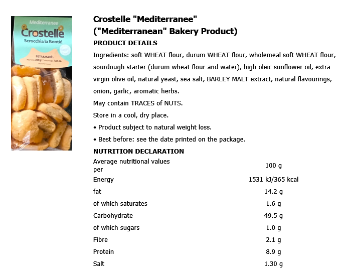 • Crostelle "Mediterranee" ("Mediterranean" Bakery Product) 200g,