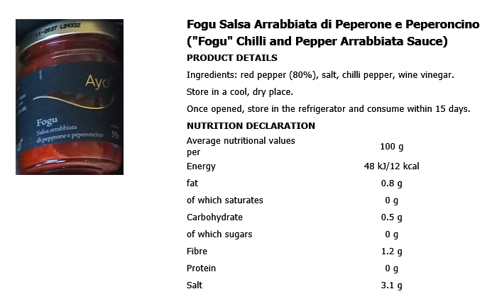 • Fogu Salsa Arrabbiata di Peperone e Peperoncino ("Fogu" Chilli and Pepper Arrabbiata Sauce) 95g,