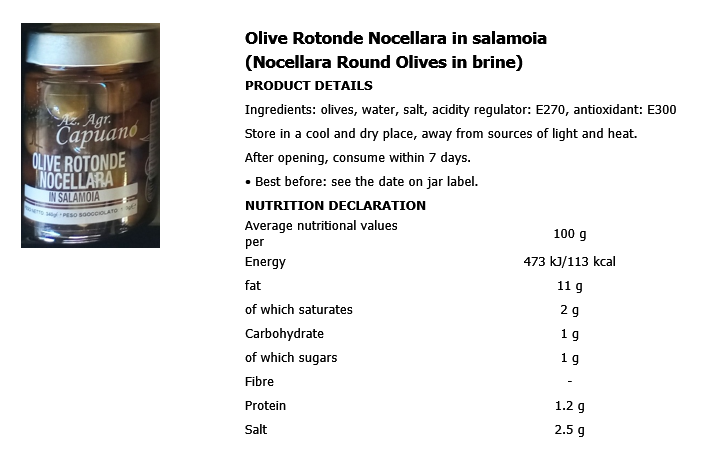 • Olive Rotonde Nocellara (Nocellara Round Olives) 340g,