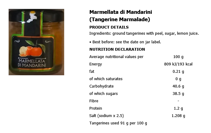 • Marmellata di Mandarini (Tangerine Marmalade) 40g,
