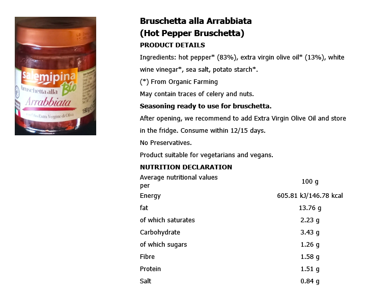 • Bruschetta alla Arrabbiata (Hot Pepper Bruschetta) 190g,
