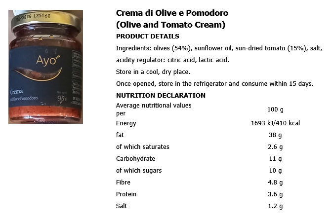 • Crema di Olive e Pomodoro (Olive and Tomato Cream) 95g,