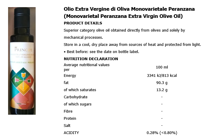 • Olio Extra Vergine di Oliva Monovarietale Peranzana (Monovarietal Peranzana Extra Virgin Olive Oil) 250ml,