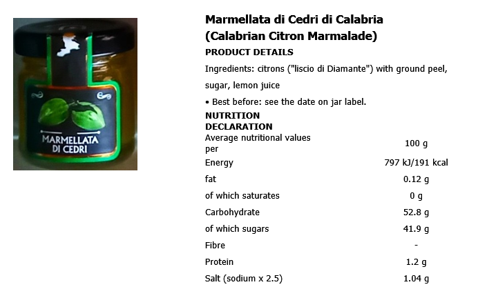 • Marmellata di Cedri (Citron Marmalade) 40g,