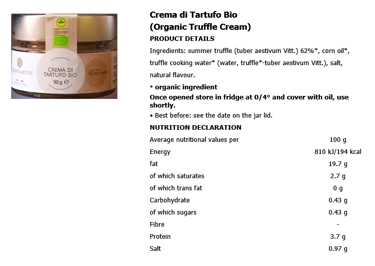 • Crema di Tartufo Bio (Organic Truffle Cream) 90g,