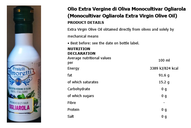 • Olio Extra Vergine di Oliva Monocultivar Ogliarola (Monocultivar Ogliarola Extra Virgin Olive Oil) 250ml,