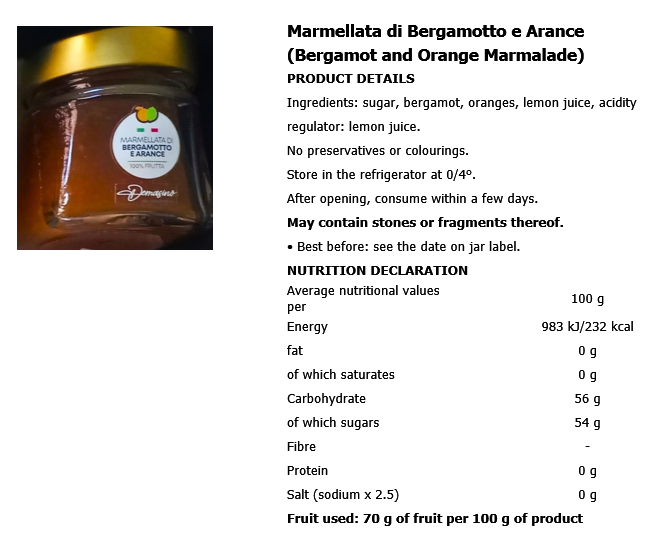• Marmellata di Bergamotto e Arance (Bergamot and Orange Marmalade) 120g,