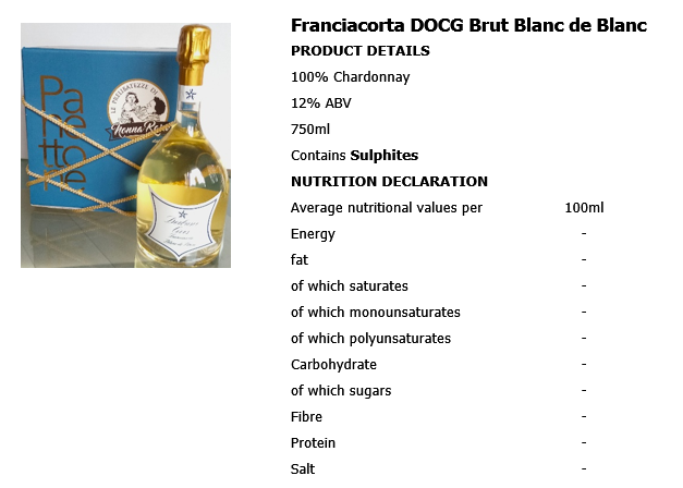 • Franciacorta DOCG Brut Blanc de Blanc (100% Chardonnay) 750ml
