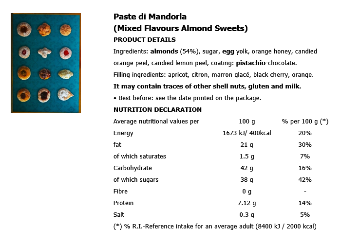 • Paste di Mandorla (Mixed Almond Sweets) 380g,