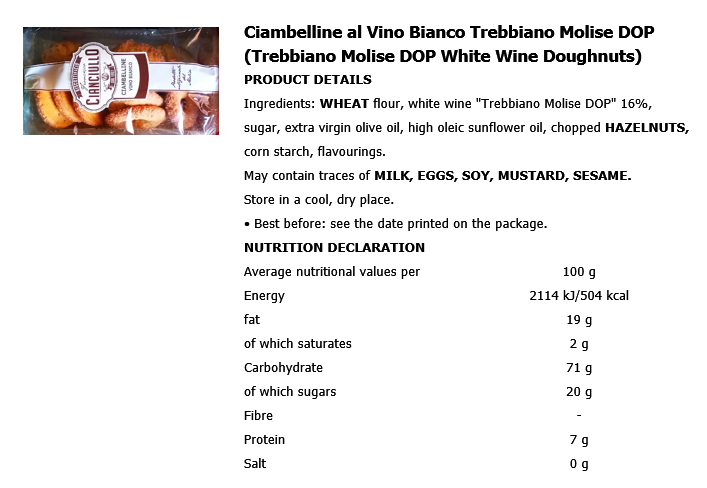 • Ciambelline al Vino Bianco Trebbiano Molise DOP (Trebbiano Molise DOP White Wine Doughnuts) 200 g,