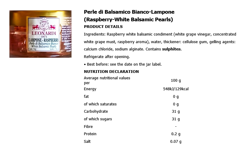 • Perle di Balsamico Bianco-Lampone (Raspberry-White Balsamic Pearls) 50g,