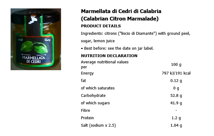 • Marmellata di Cedri (Citron Marmalade) 40g,