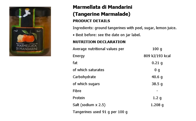 • Marmellata di Mandarini (Tangerine Marmalade) 40g,