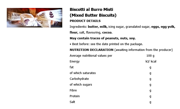• Biscotti al Burro Misti (Mixed Butter Biscuits) 180 g,