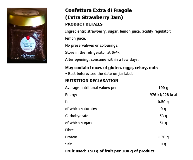 • Confettura Extra di Fragole (Extra Strawberry Jam) 120g,