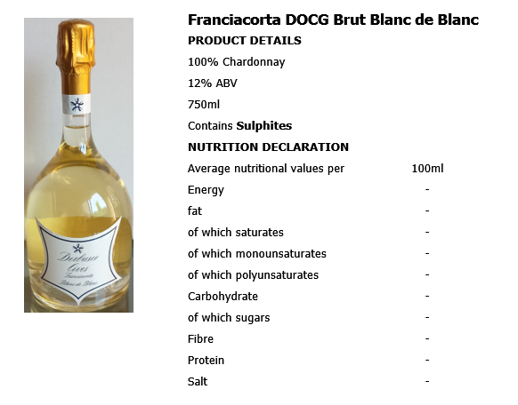 • Franciacorta DOCG Brut Blanc de Blanc 12% ABV (100% Chardonnay) 750ml,