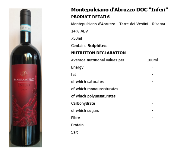 • Montepulciano d'Abruzzo DOC "Inferi" 14% ABV 750ml,
