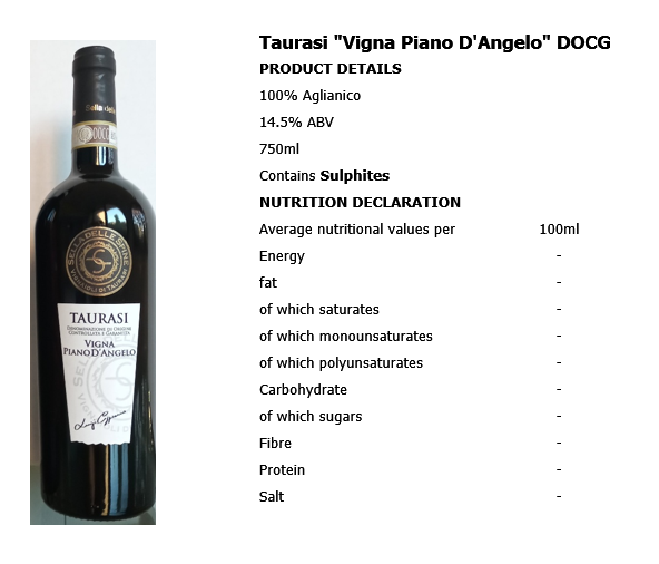 • Taurasi "Vigna Piano D'Angelo" DOCG 14.5% ABV 750ml