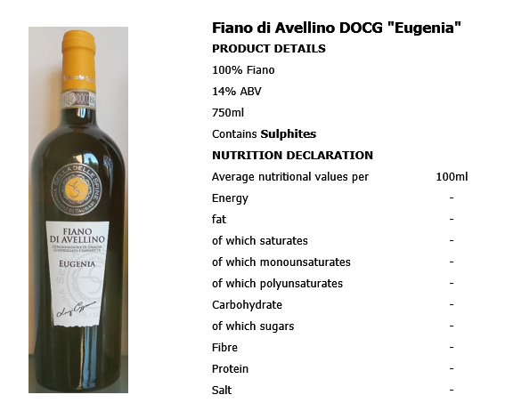 • Fiano di Avellino DOCG "Eugenia" 14% ABV 750ml,