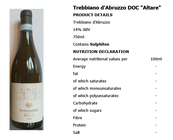 • Trebbiano d'Abruzzo DOC "Altare" 14% ABV 750ml